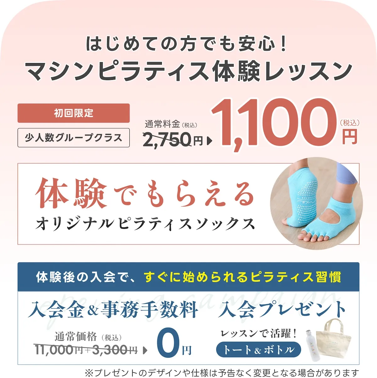 体験レッスンの本来の目的である、ピラティスの楽しさ、スタジオの雰囲気を味わっていただければ嬉しいです。
